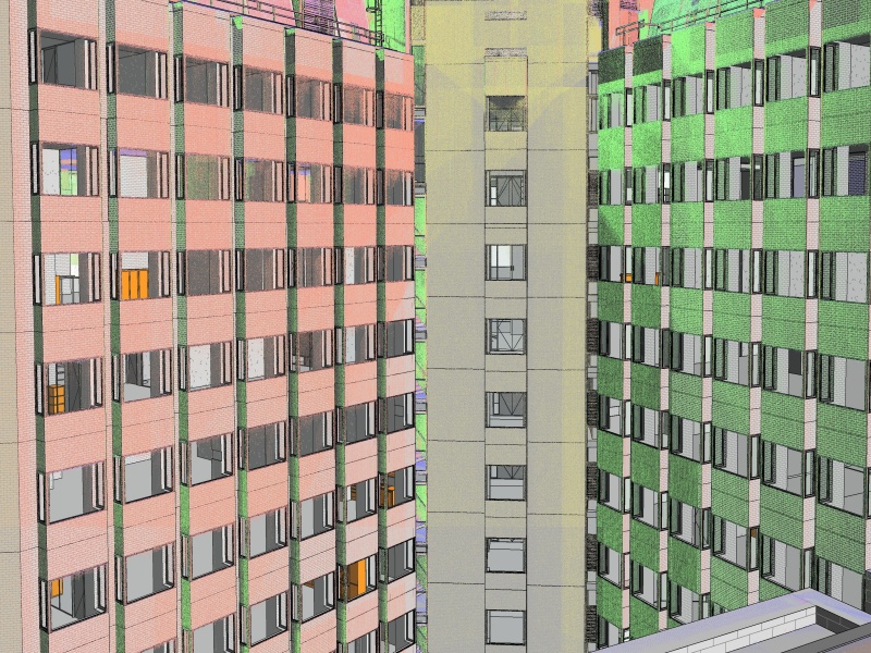 - Large rooftop plant rooms generate large service shafts connecting down to basements within tight service shafts, complicating collection of high-quality Point Cloud data.